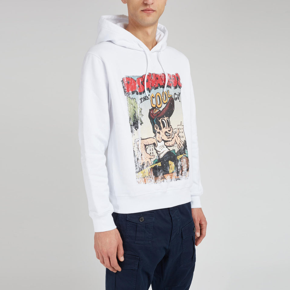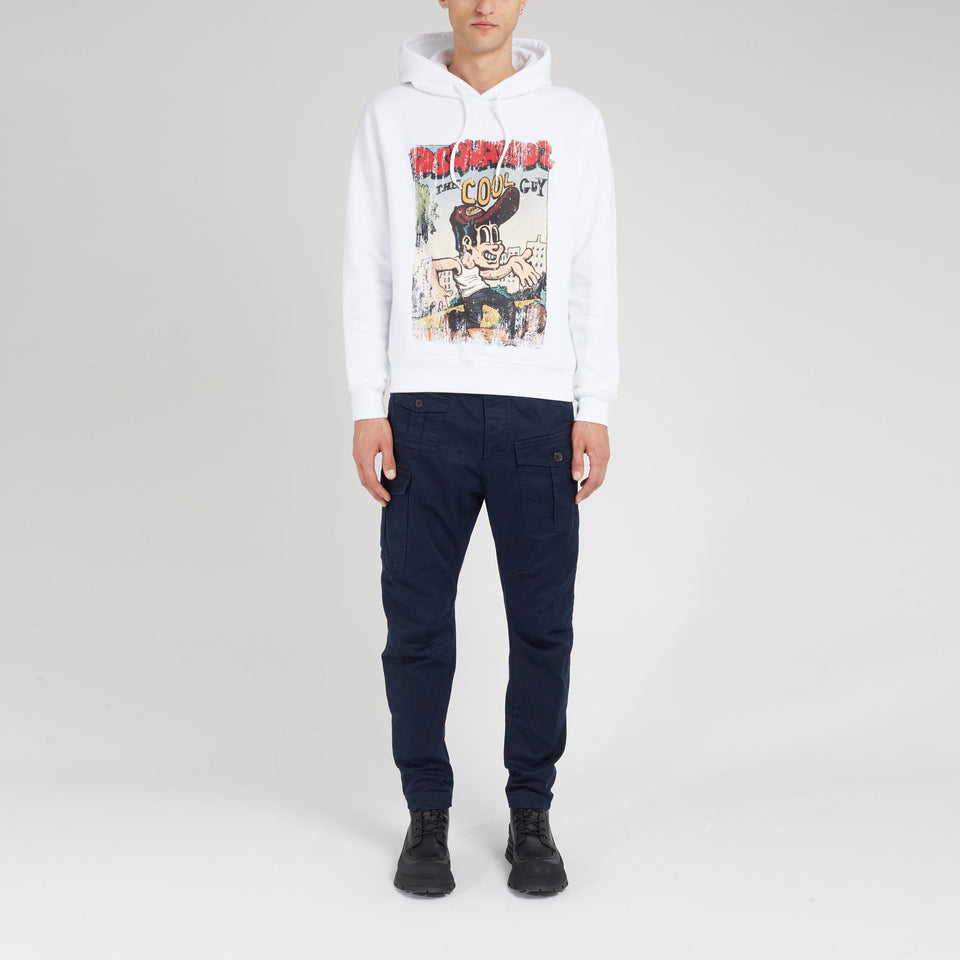 Cotton sweatshirt with long sleeves and drawstring hood, front detail with contrasting print.