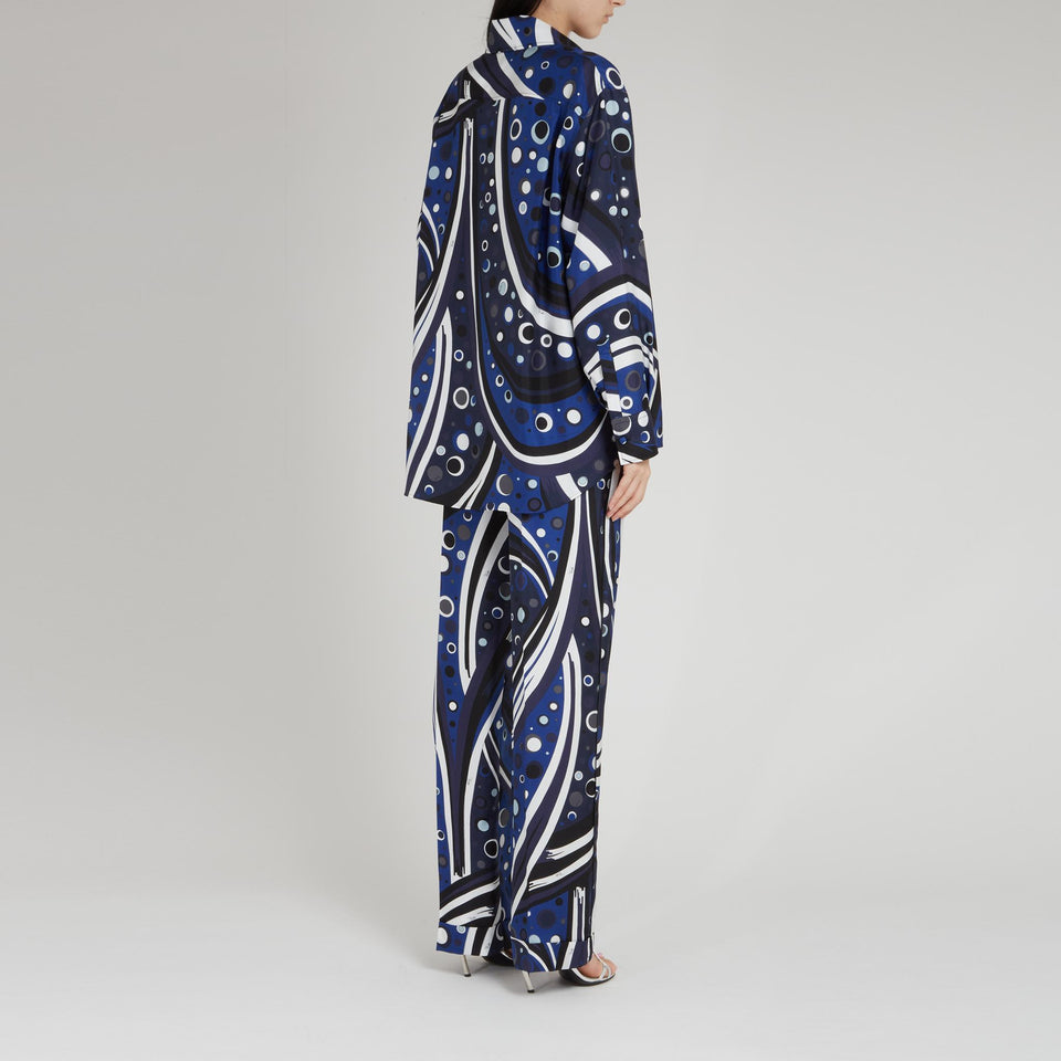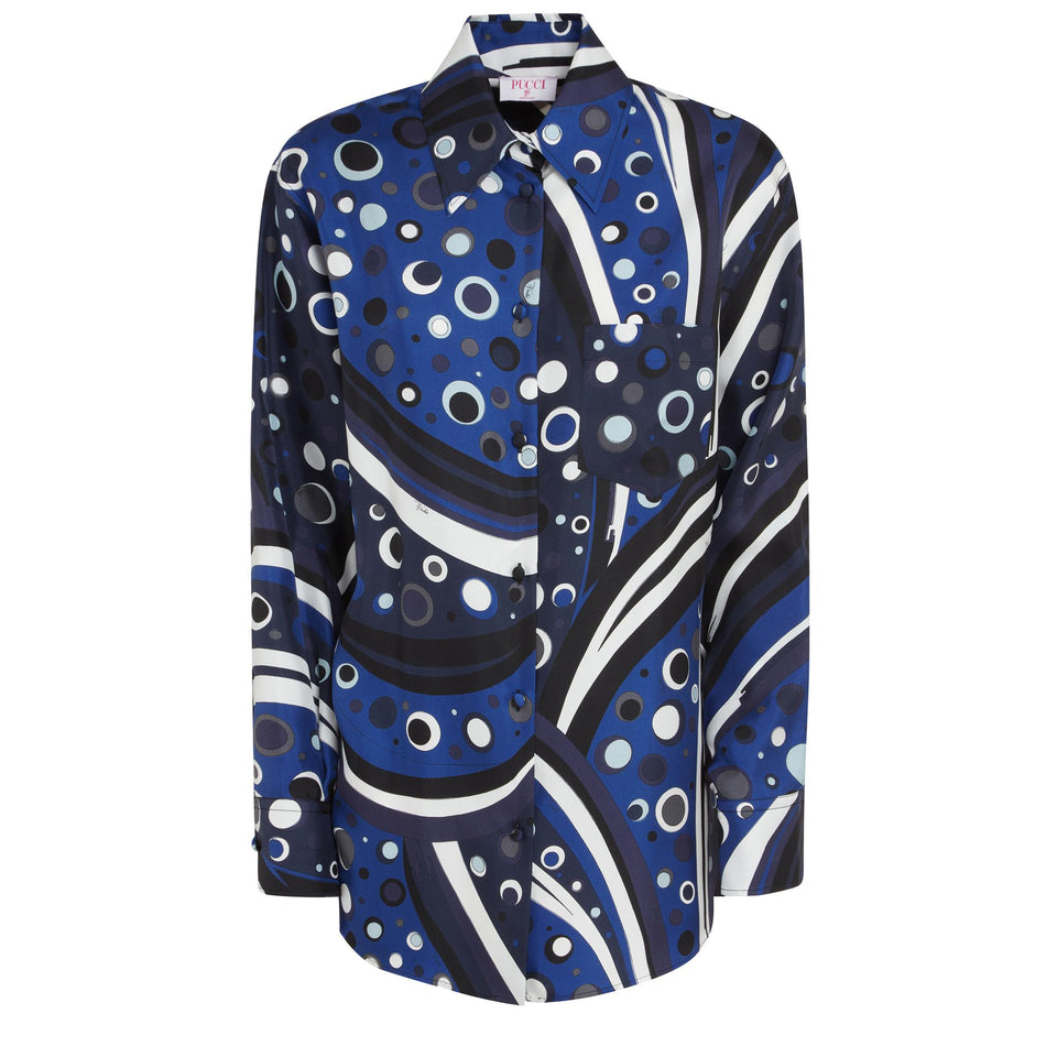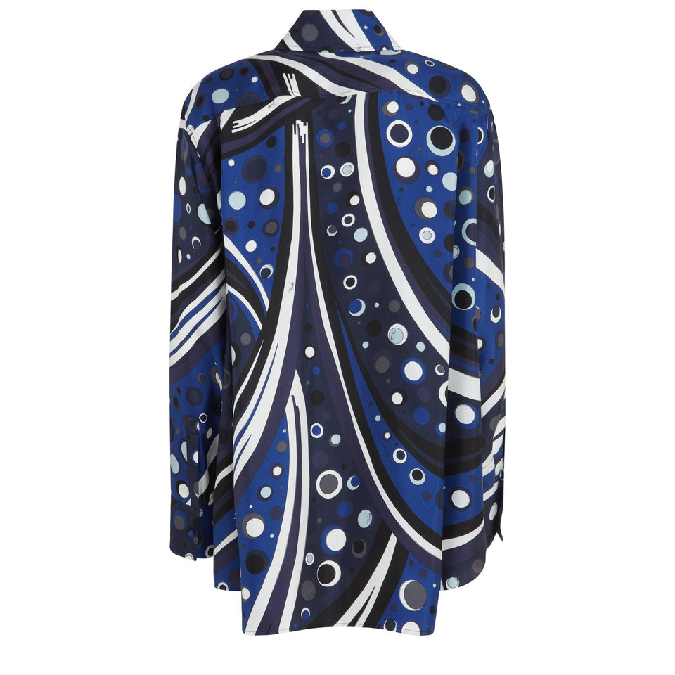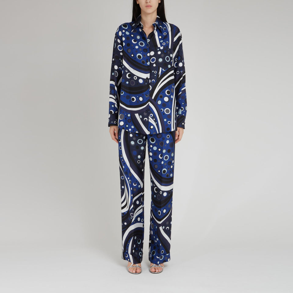 Silk shirt with long sleeves and collar, all-over ''Fontane'' print and front button closure.