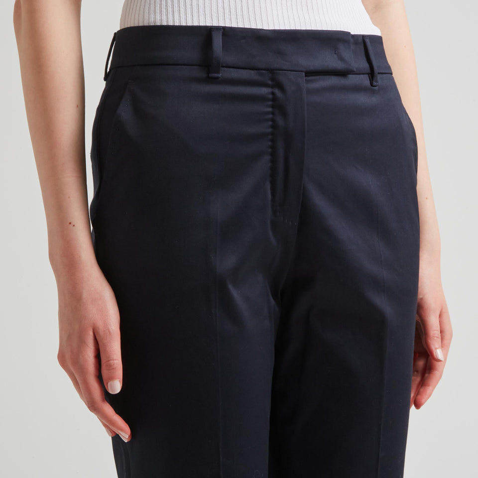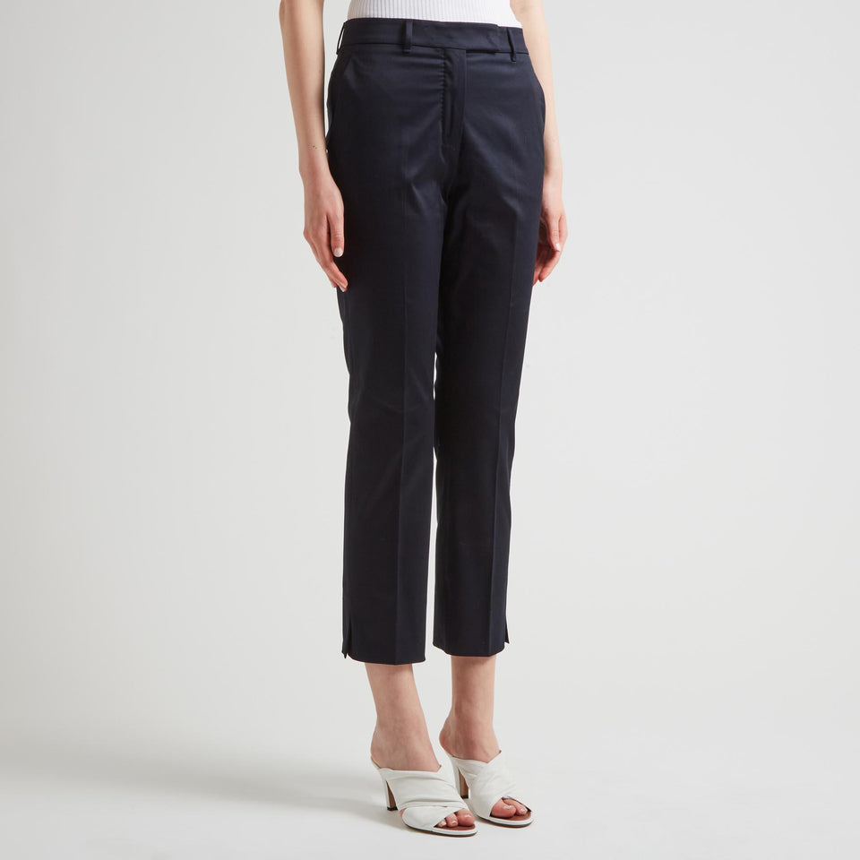 Tailored crop trousers in fabric with belt loops, two side pockets and two rear welt pockets and concealed front fastening.