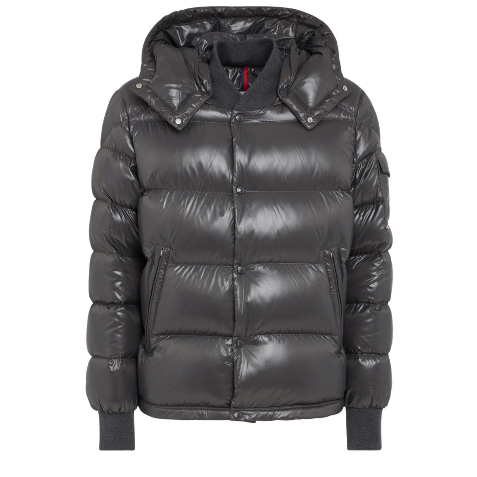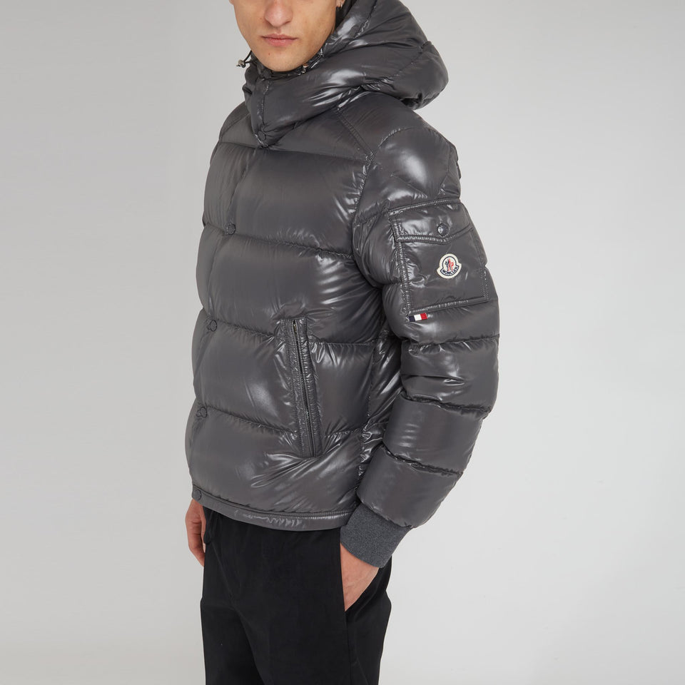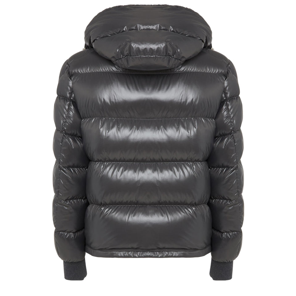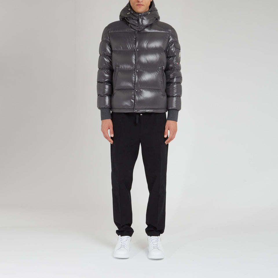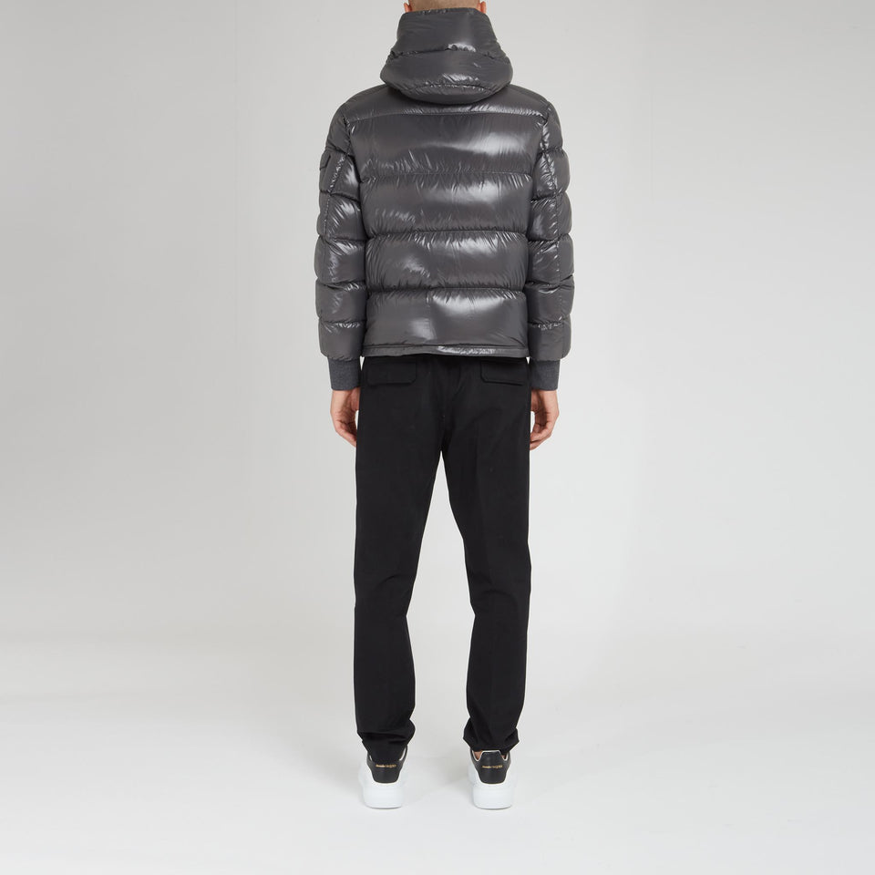 "Maljasset" down jacket in fabric with long sleeves and removable hood, two side pockets with zip, contrasting logo on the shoulder and front closure with press studs.