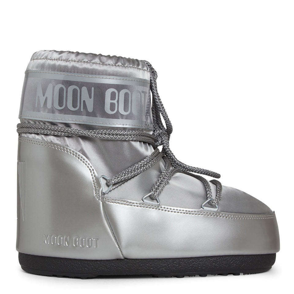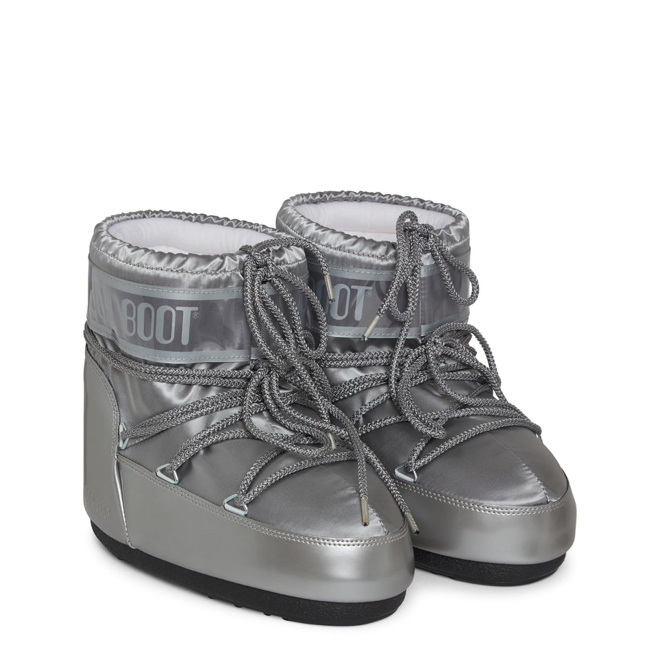 Moon Boot "Icon Low" in water-repellent fabric with tone-on-tone logo band and lace-up closure.