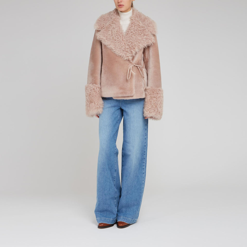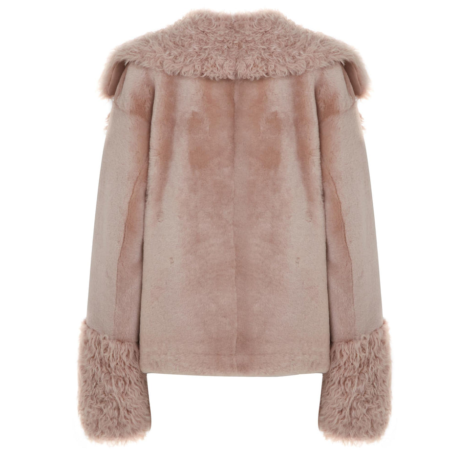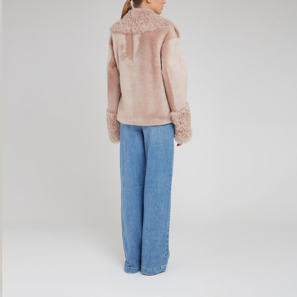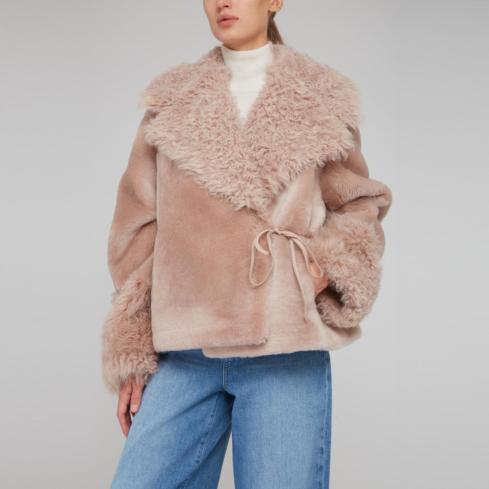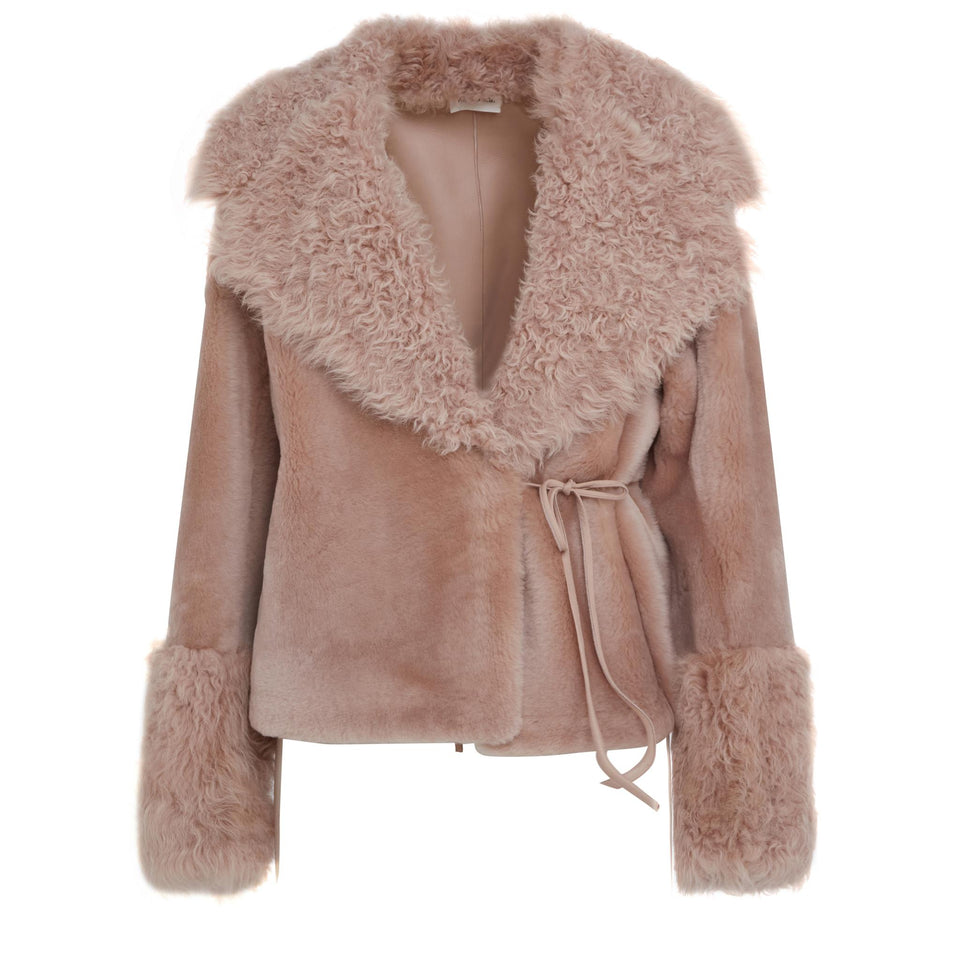 Crop jacket in fabric with long sleeves and wide lapels, front closure with lace.