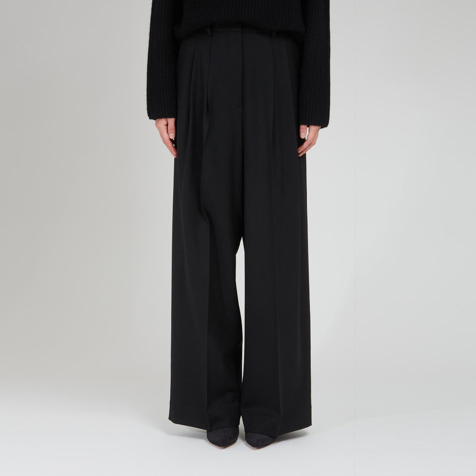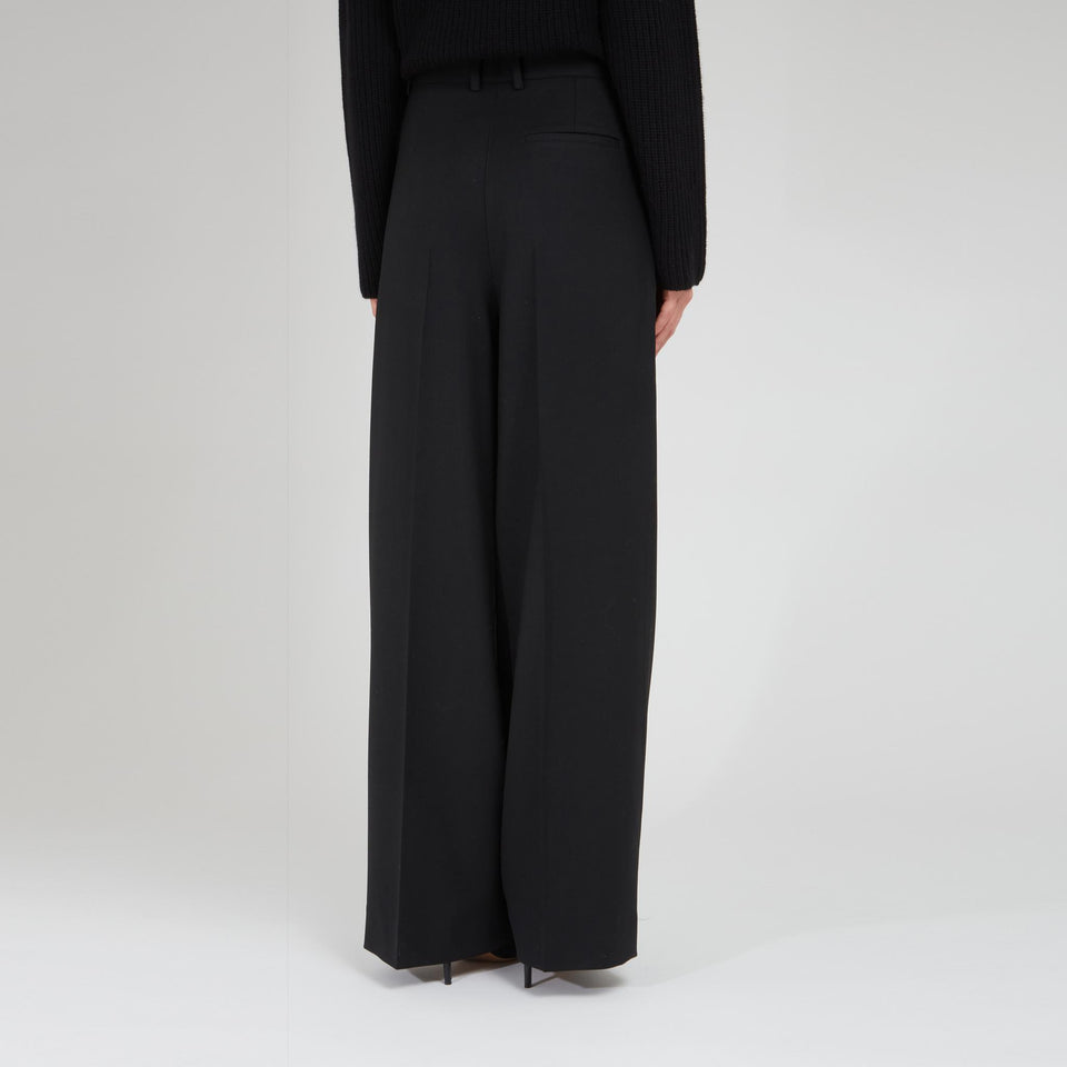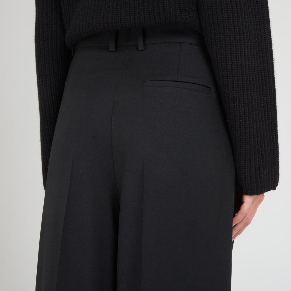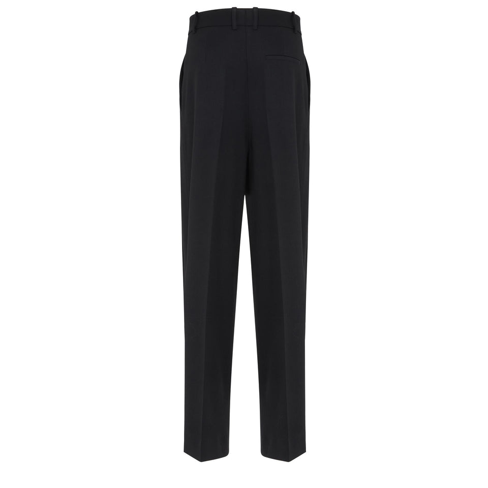 Wool trousers with low crotch and belt loops, two side pockets and one back welt pocket, concealed front closure.
