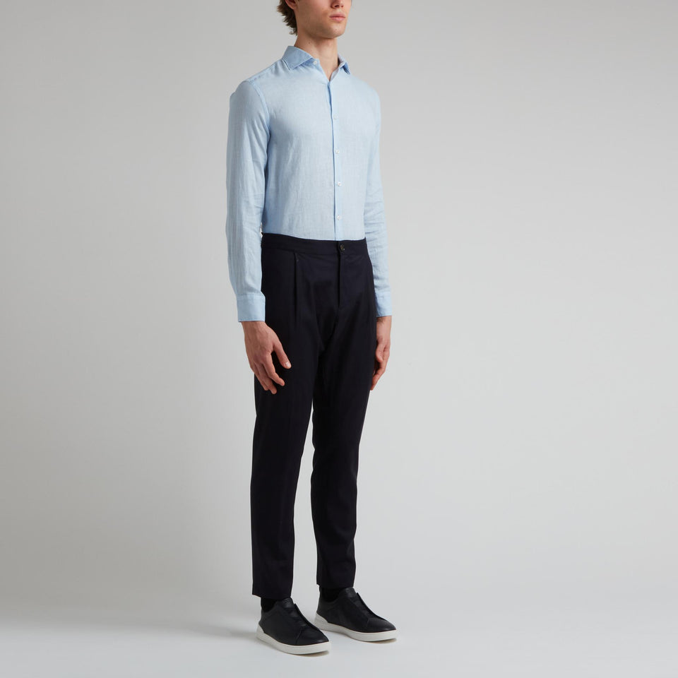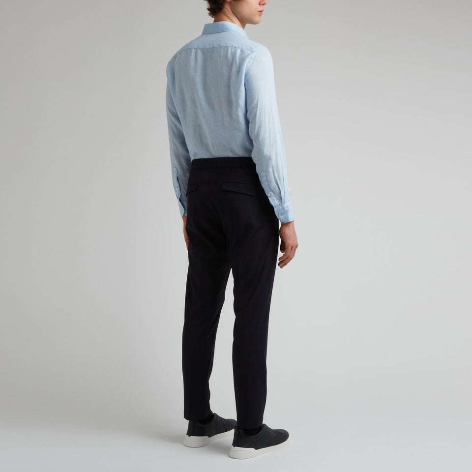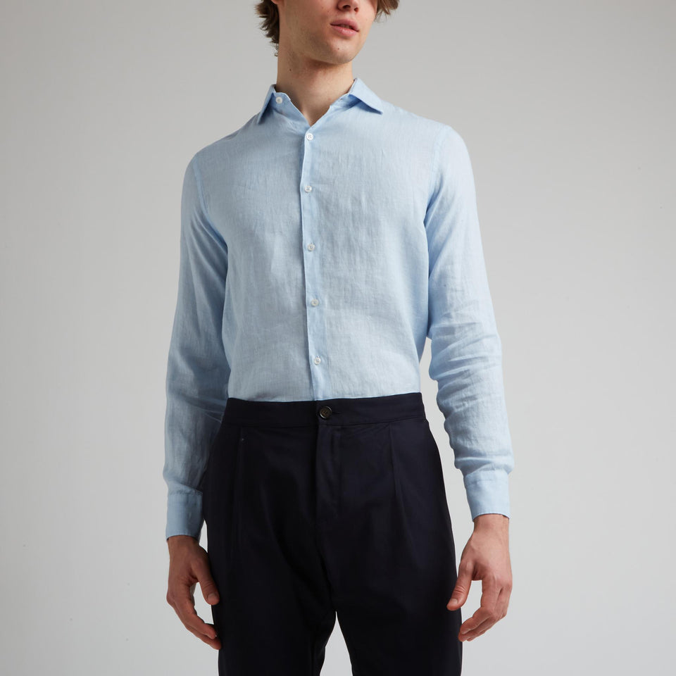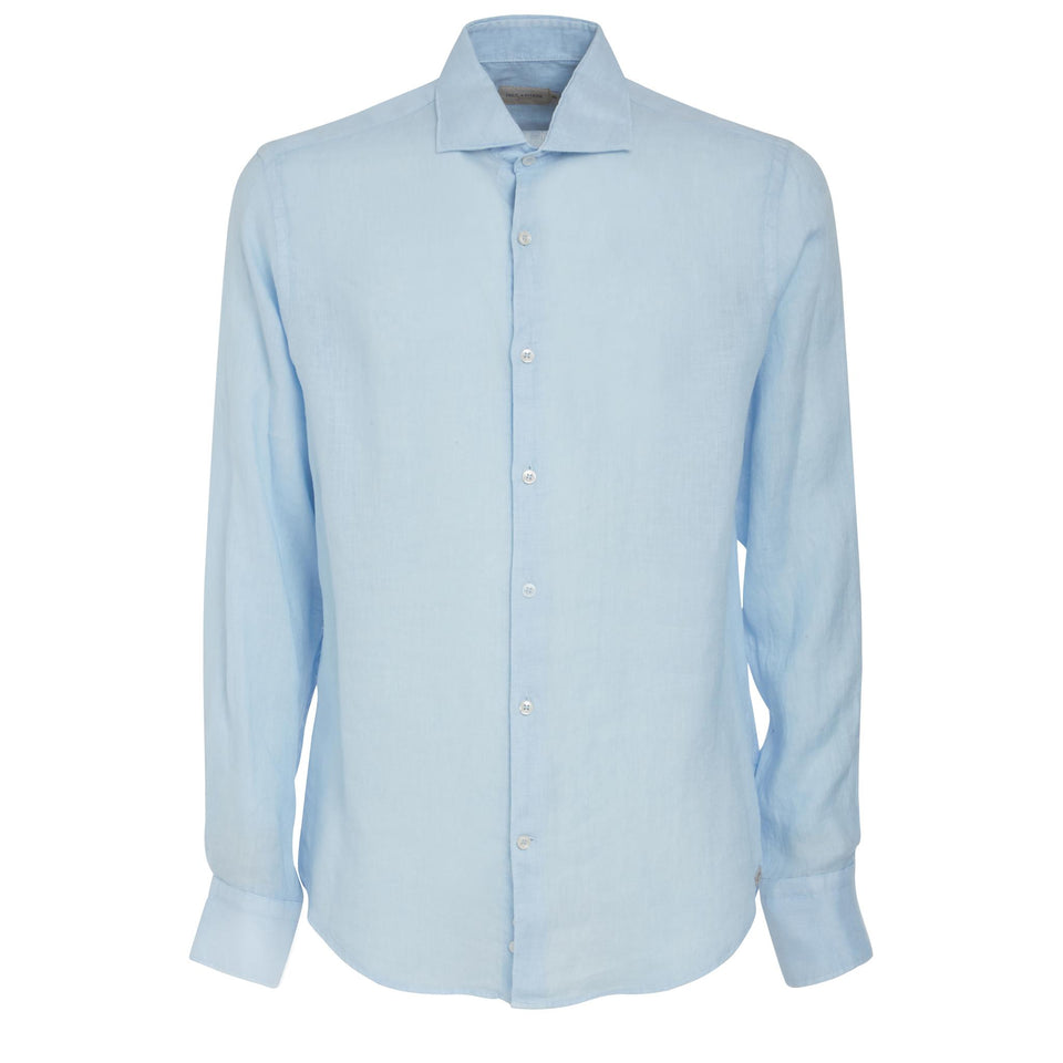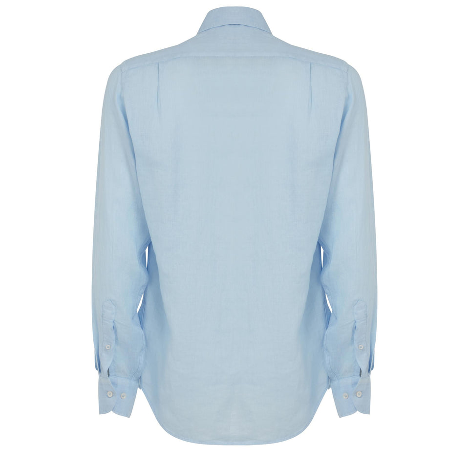 Cotton shirt with long sleeves and collar, eight-button front closure.