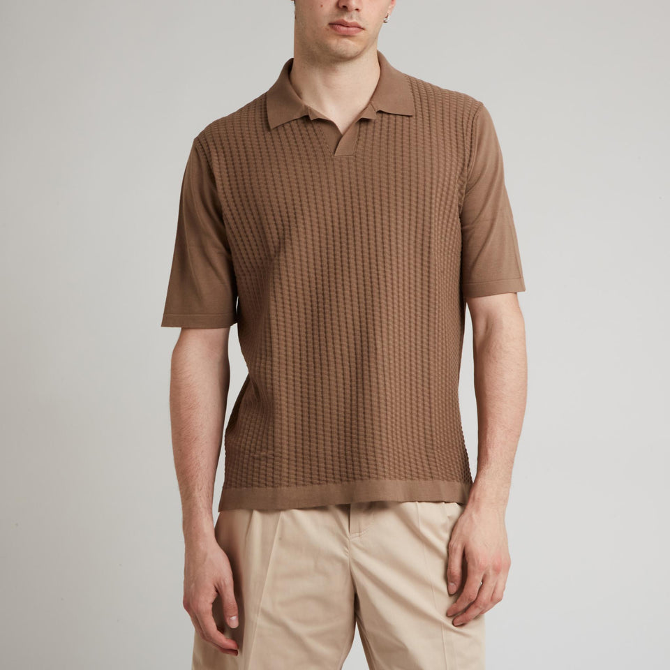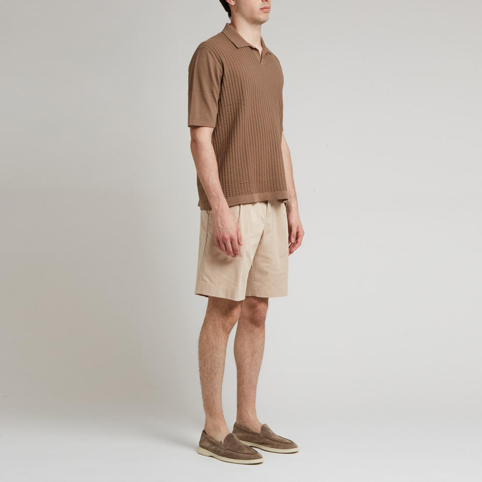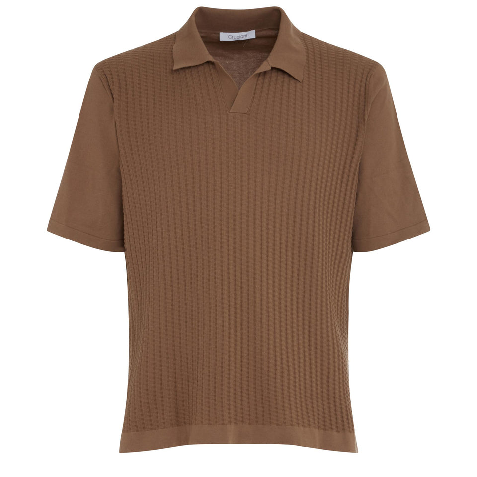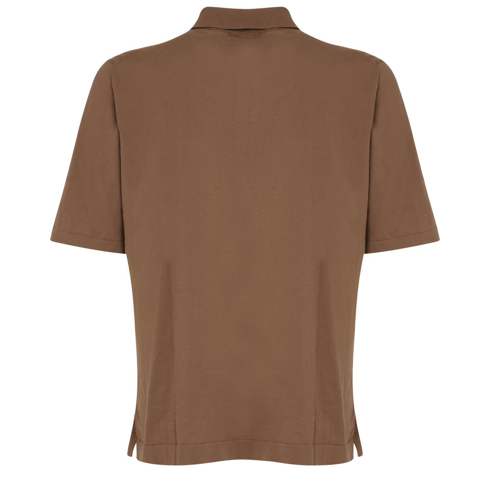 Cotton polo shirt with short sleeves and buttonless collar.