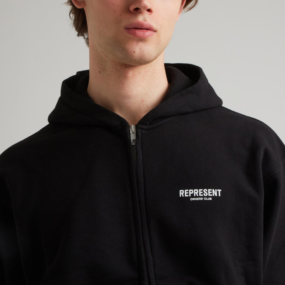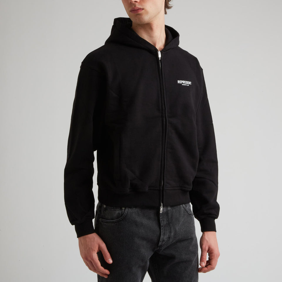 Cotton sweatshirt with long sleeves and hood, two side welt pockets, contrasting front and back logo and zip fastening.