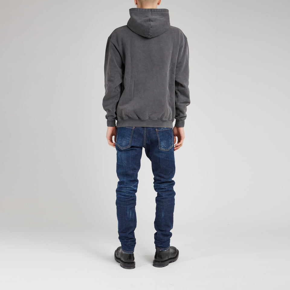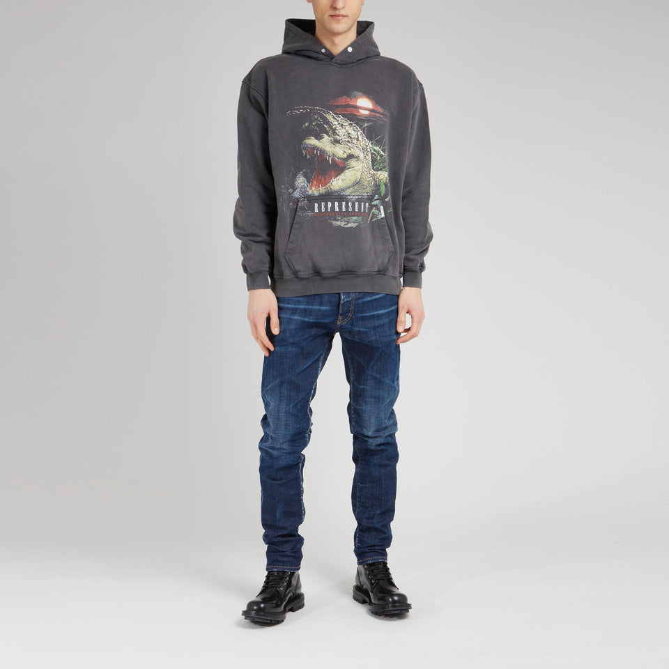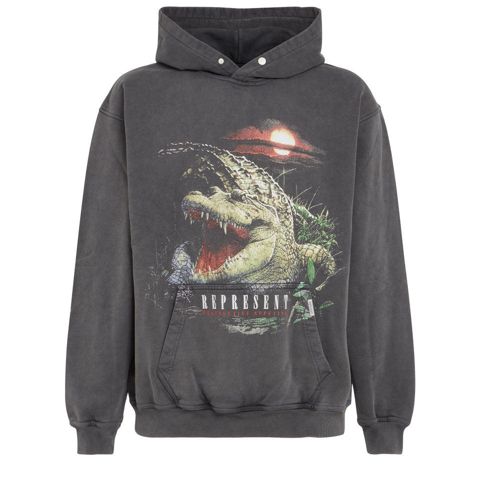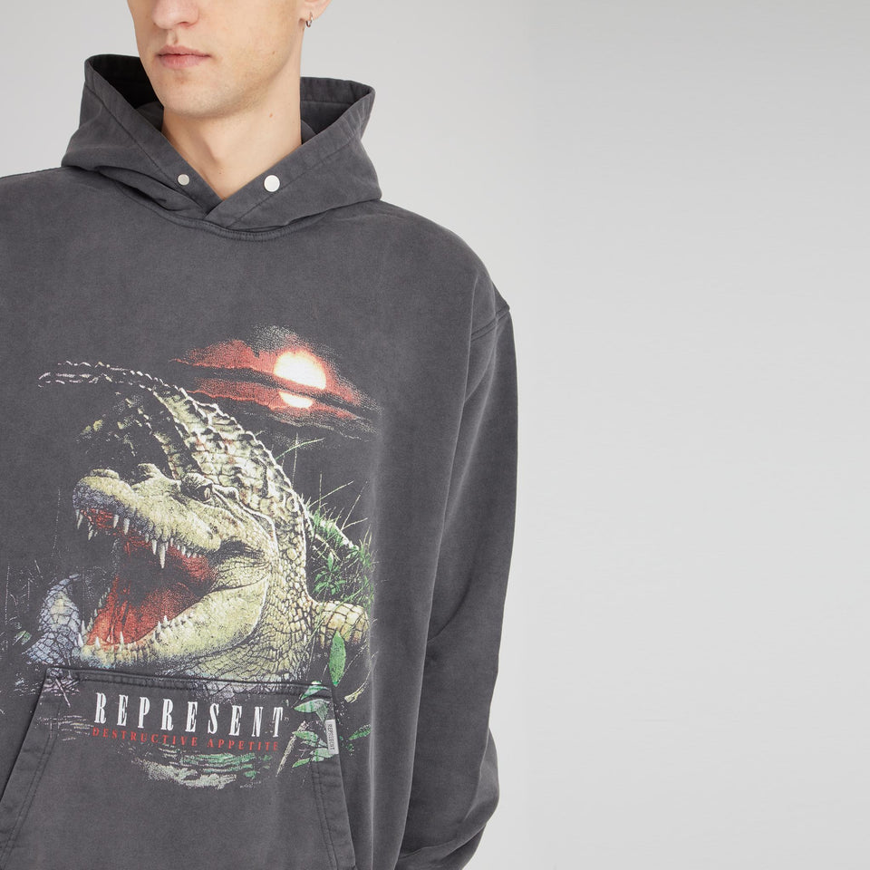 Sweatshirt in jersey with long sleeves and hood, front pouch pocket and detail with contrasting front print.
