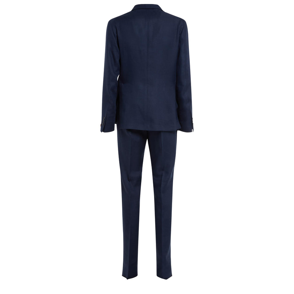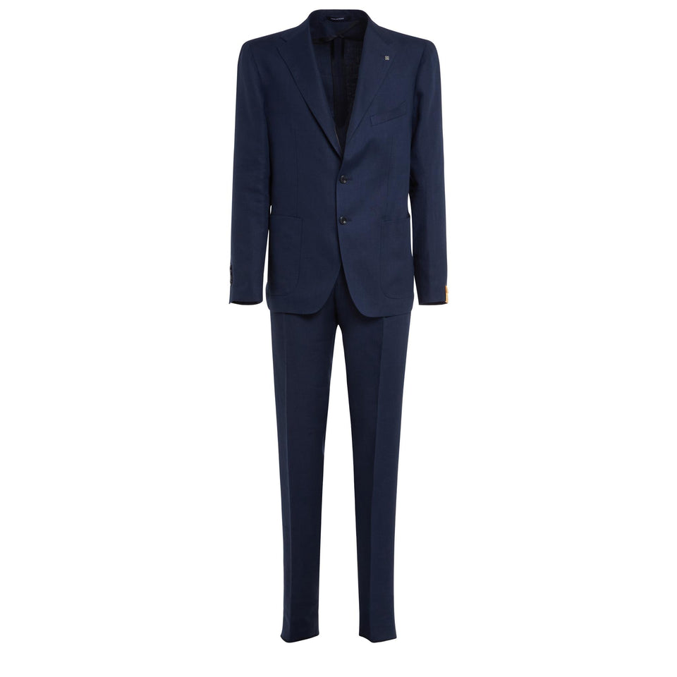 Linen dress with long sleeves and notched lapels, two side patch pockets and two-button front closure.