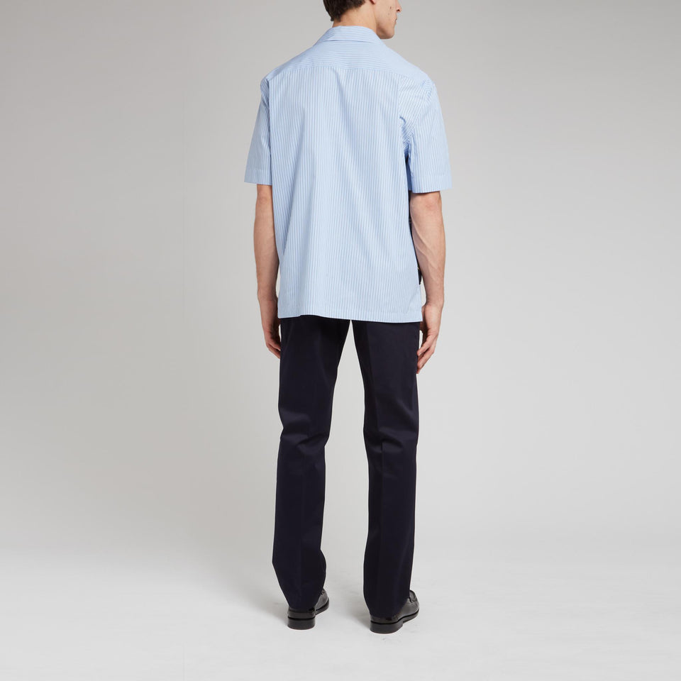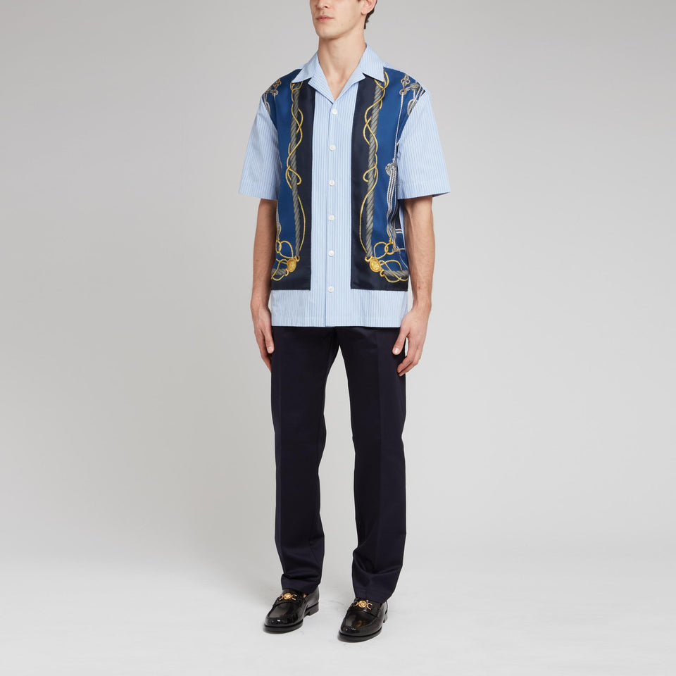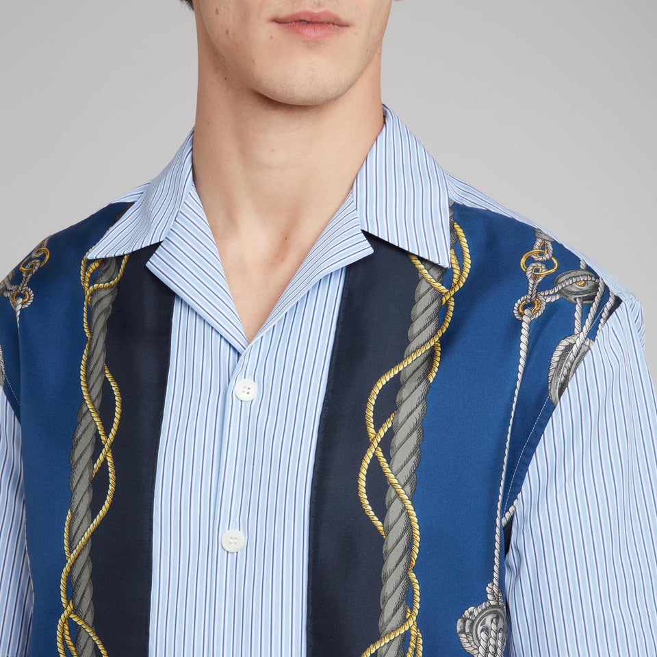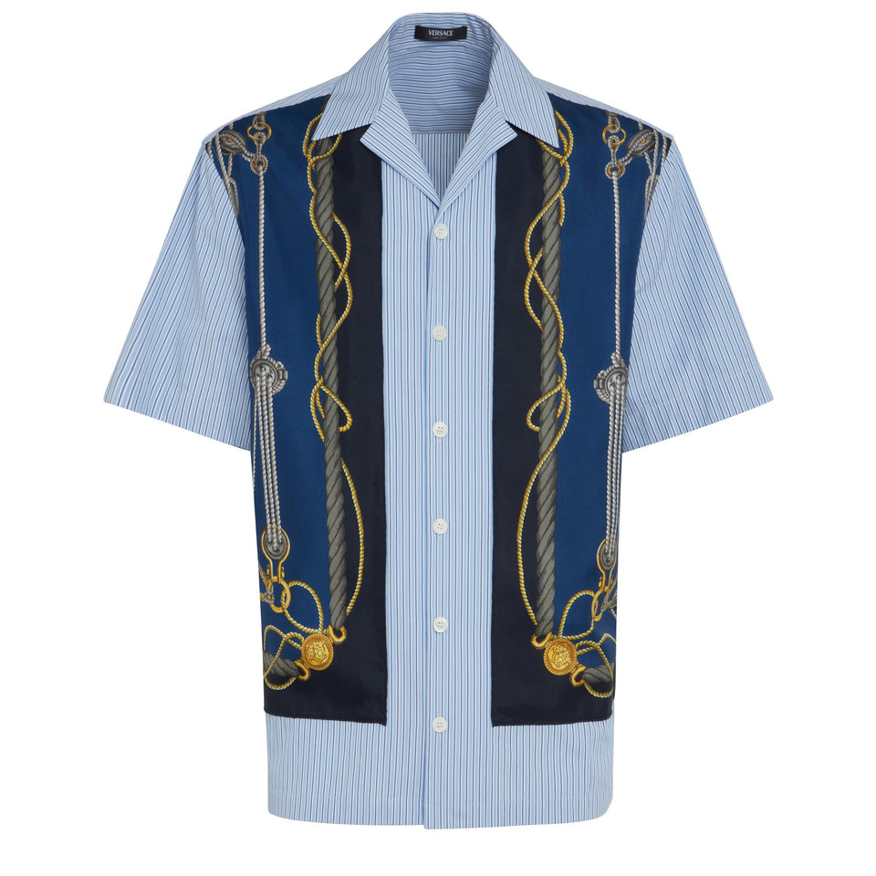 Cotton shirt with short sleeves and Cuban collar, detail with silk inserts and six-button front closure.