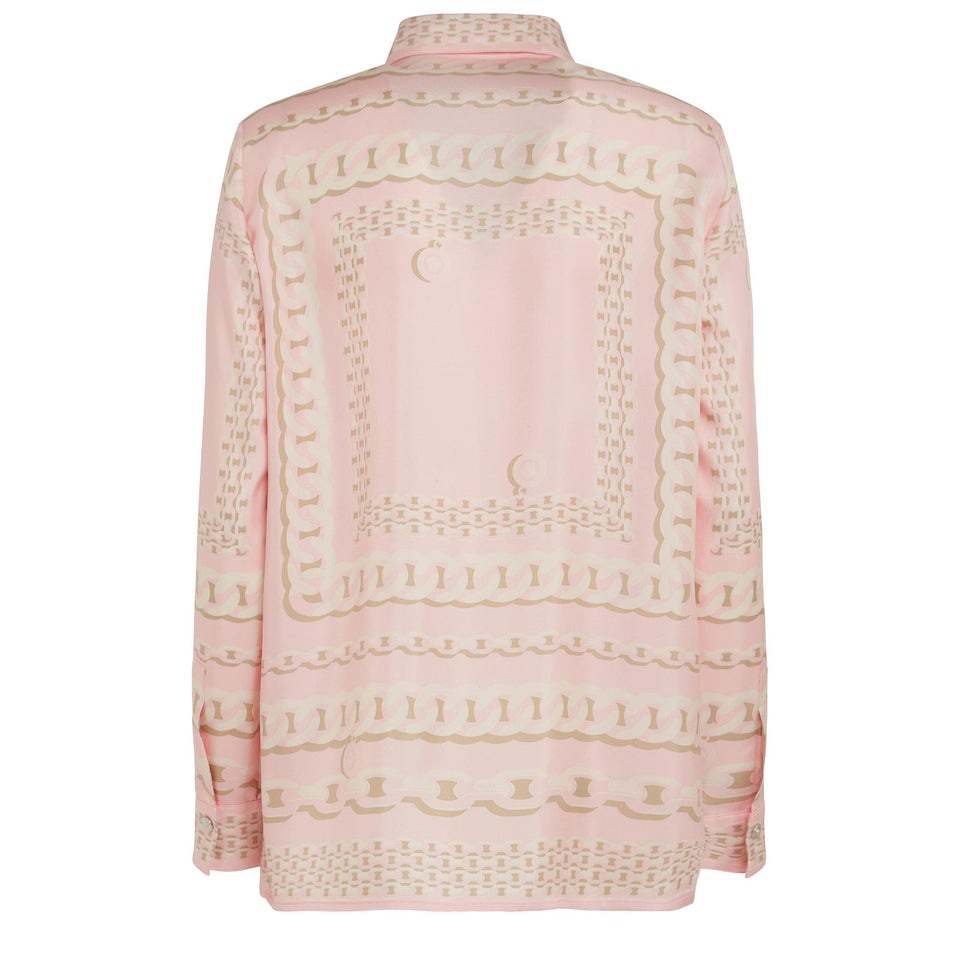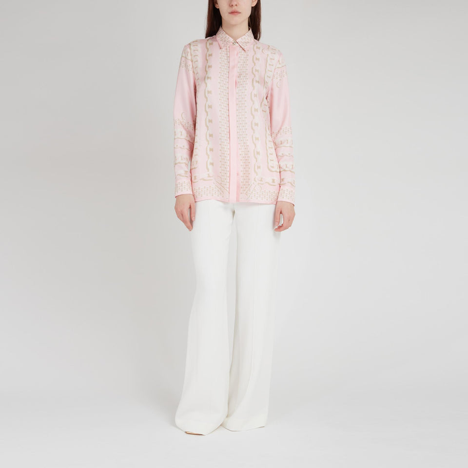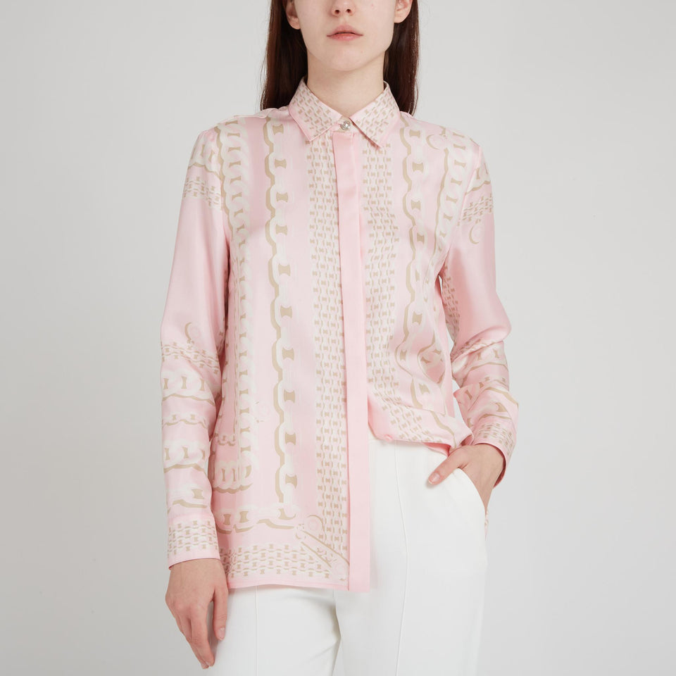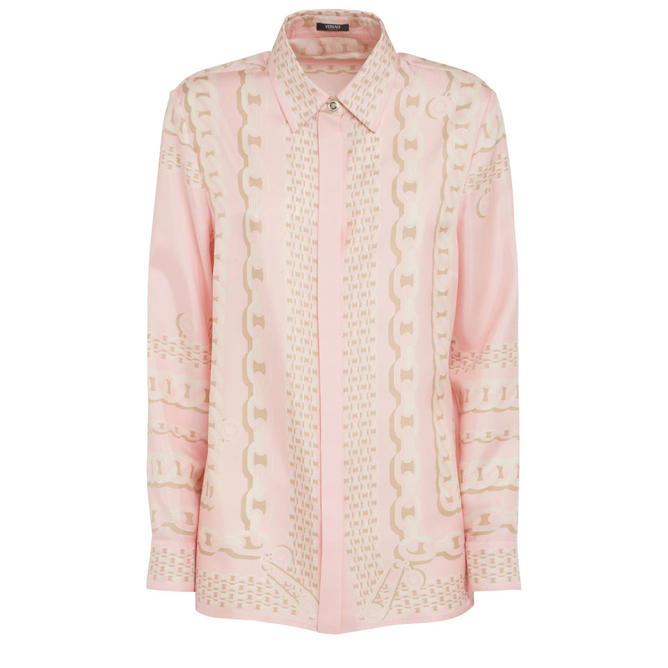 ''Versace Treasure'' silk shirt with long sleeves and collar, all-over multicolor pattern and concealed front closure.
