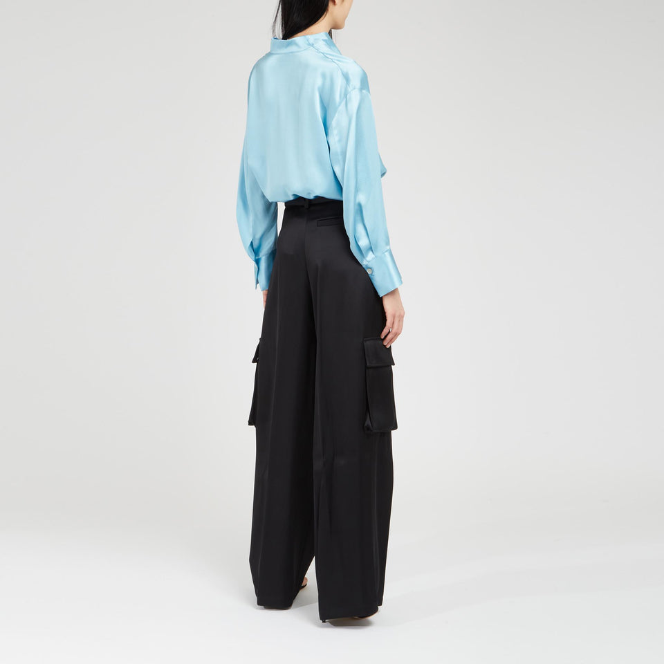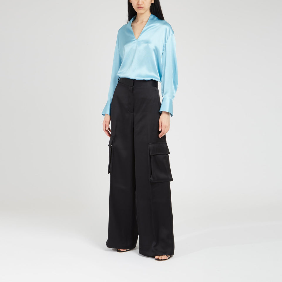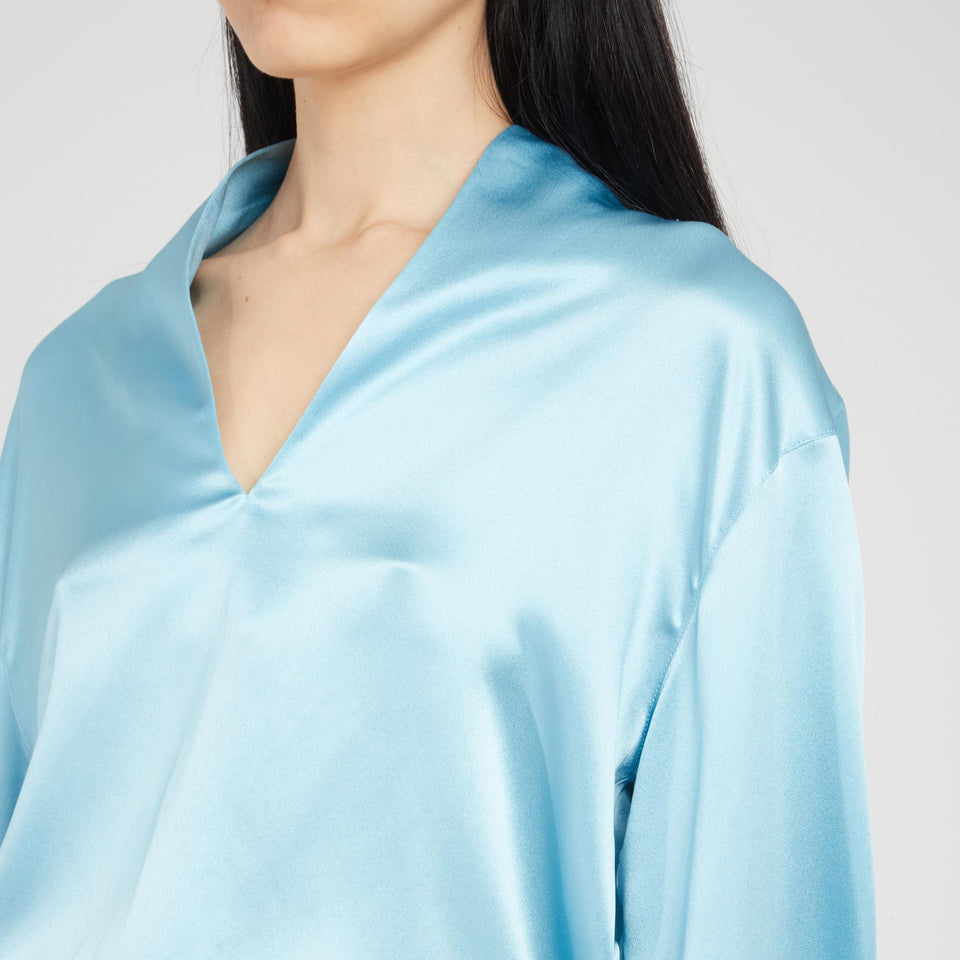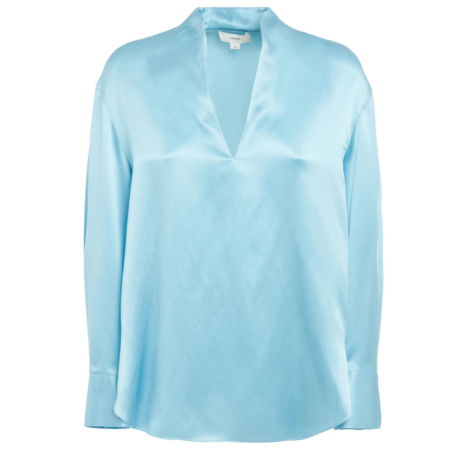 Silk shirt with long sleeves and V-neck.
