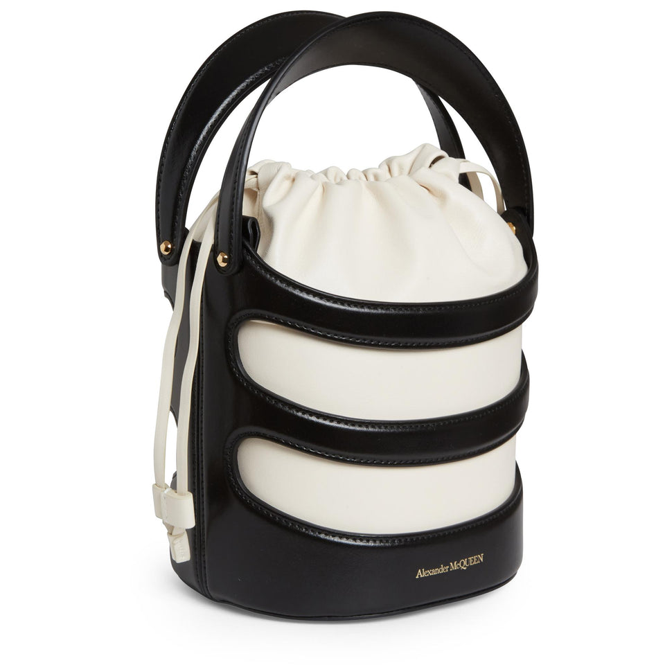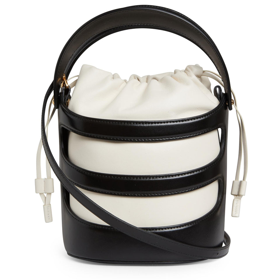 Borsa a secchiello ''The Rise'' in pelle bianca e nera
